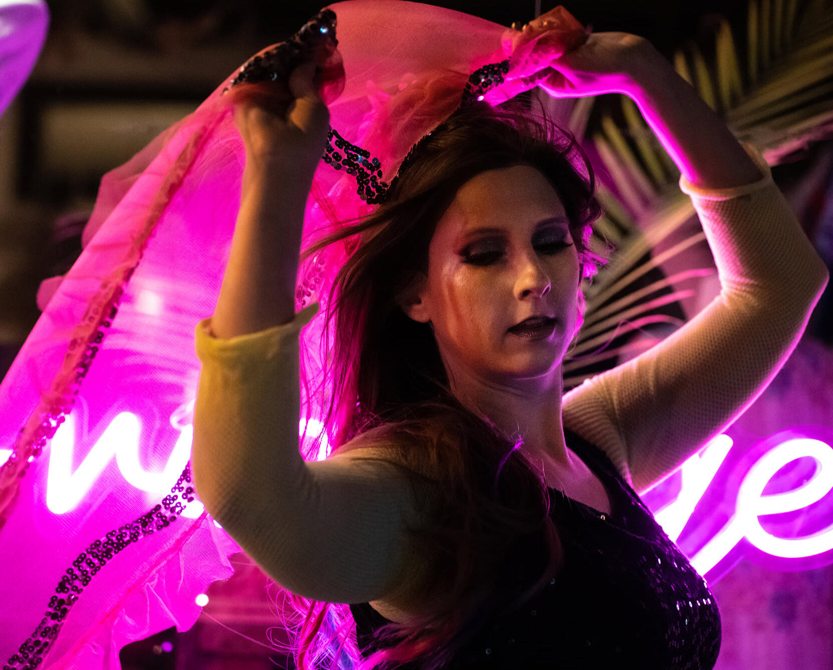 After a childhood spent in competitive dance, state choirs, theater & eventually placing in an National talent competition in Florida, she attended Iowa School of Beauty, & took to bigger stages & learned skills such as Flow Arts, Fire, Burlesque & continued her passions in costume design- Winning various Pageants & Contests!